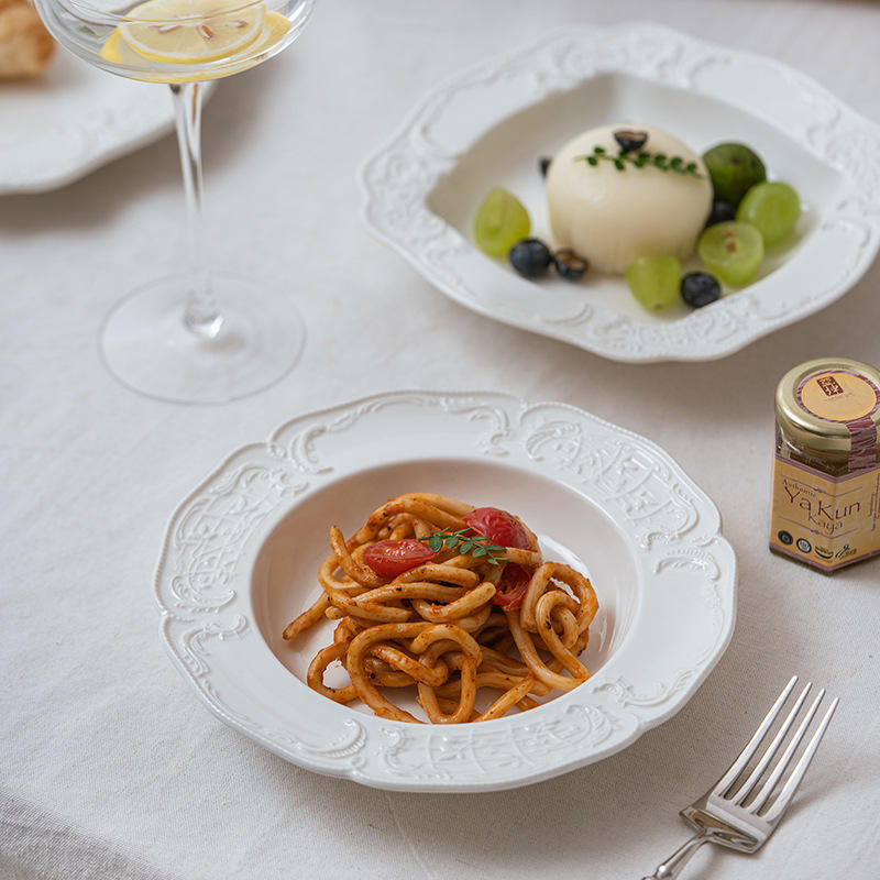 Vaisselle en céramique de style médiéval, haut niveau d'apparence, style de la cour anglaise, assiette à petit déjeuner