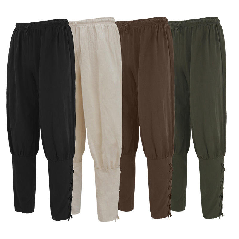 Costume Médiéval Renaissance GN Pirate Cavalier Pantalon Viking Homme avec Chevilles Serrées et Laçage en Lin Grande Taille