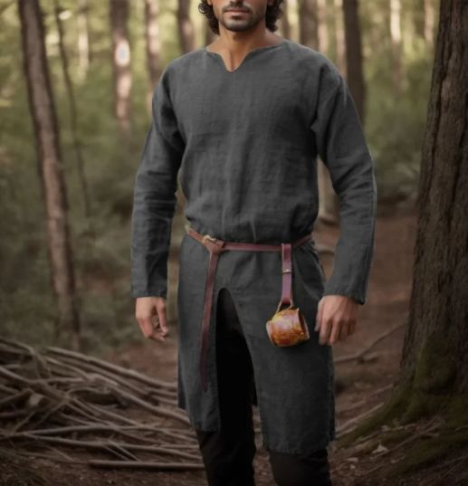 Renaissance médiévale rétro lin chemise hauts tunique mâle longues Robes robe Vintage vestes chevalier Pirate Cosplay Costumes