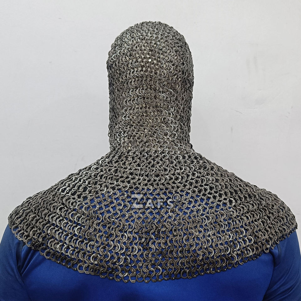 Medieval Stainless Steel Chainmail Coif Hood Handcrafted Flat Riveted Ring Armor Helmet Inner Armor Wholesale Prices Available