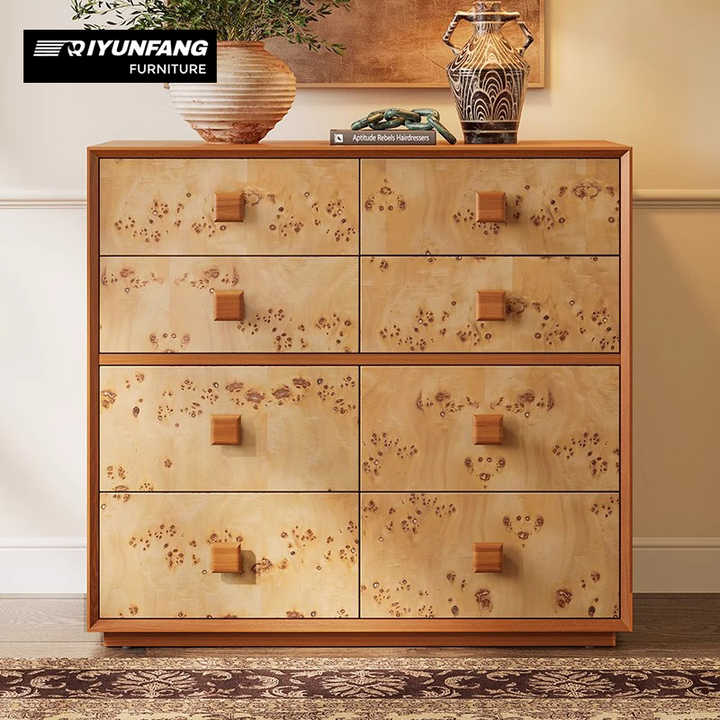 Commode à huit tiroirs en bois massif, style médiéval, motif Treetumor, avec rails de fermeture amortie, pour rangement de salon