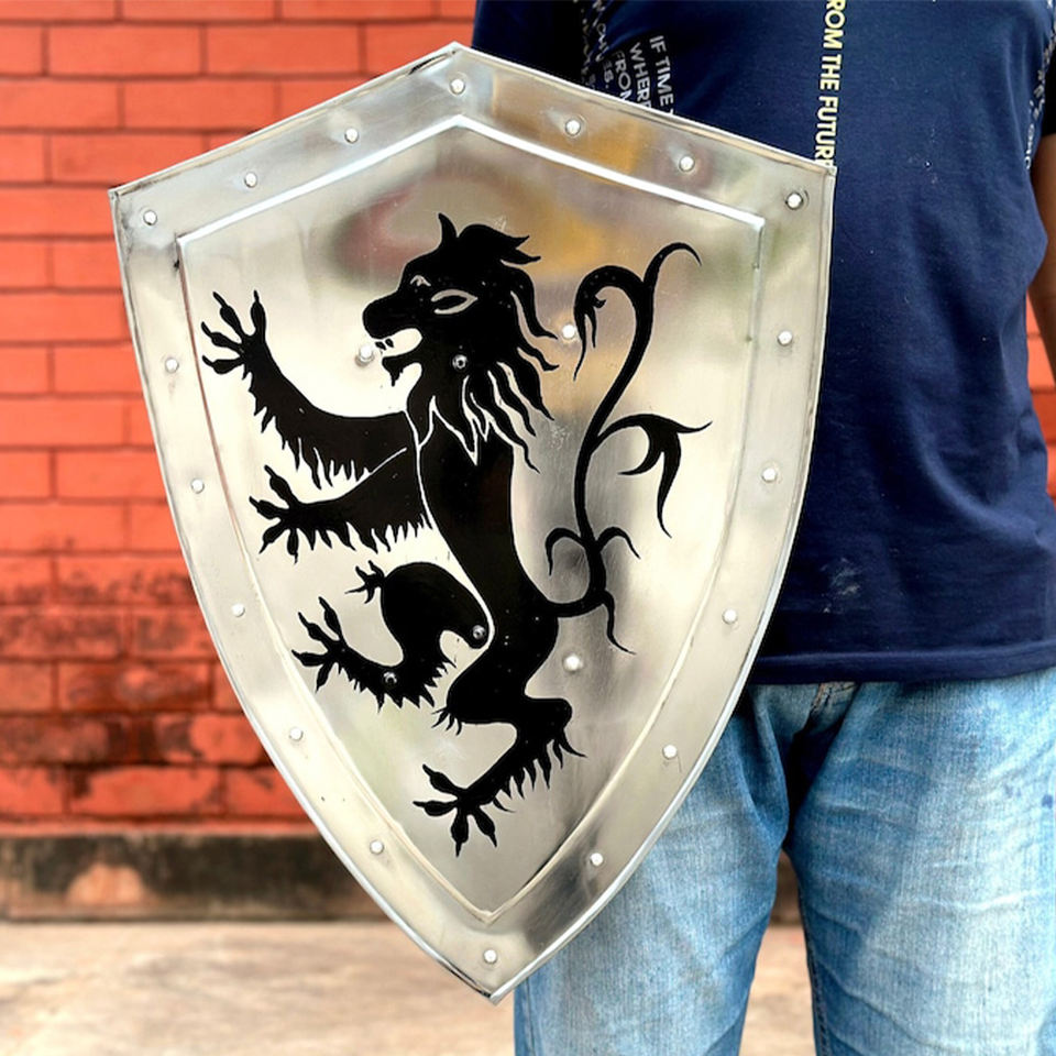 Bouclier de guerrier viking médiéval-Lothbrok Authentique rond viking battu en forme de lion