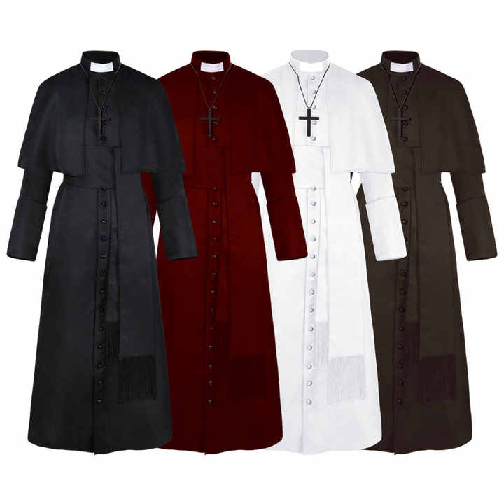 Robe de prêtre vintage médiévale, costume d'Halloween pour homme, cape de pape, pasteur, cape, costume de cosplay, robe de moine de la Renaissance, polyester