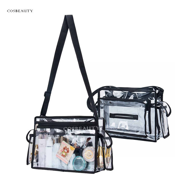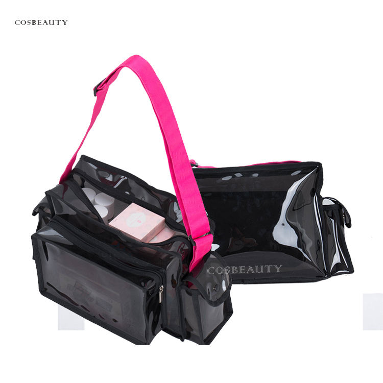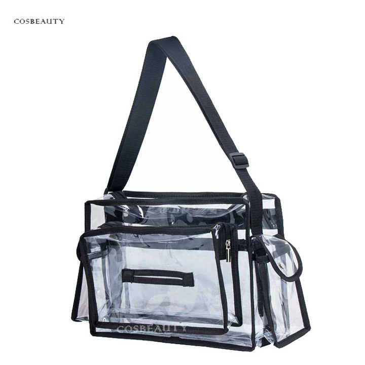 Ensemble de maquilleurs en PVC noir moyen sac sac de rangement cosmétique transparent voyage maquillage Kits organisateur MUA sac avec amovible
