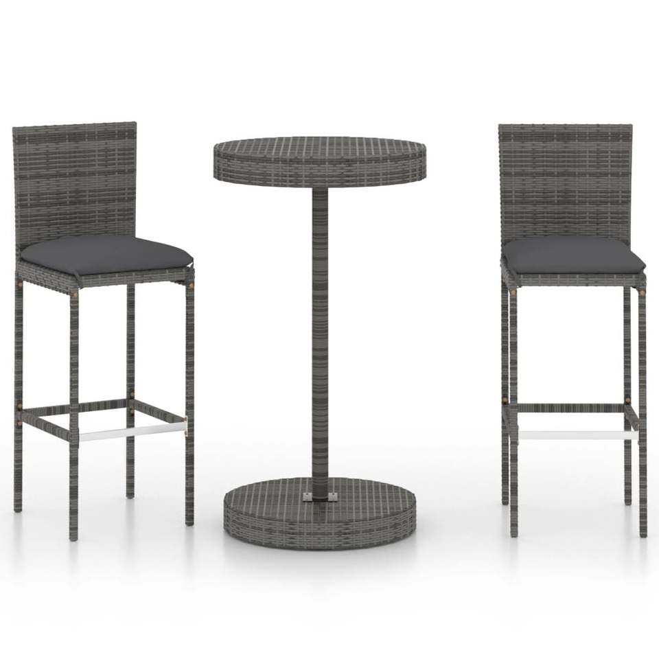 Ensemble de mobilier de bar de jardin en rotin PE gris et acier thermolaqué, de moyenne durabilité