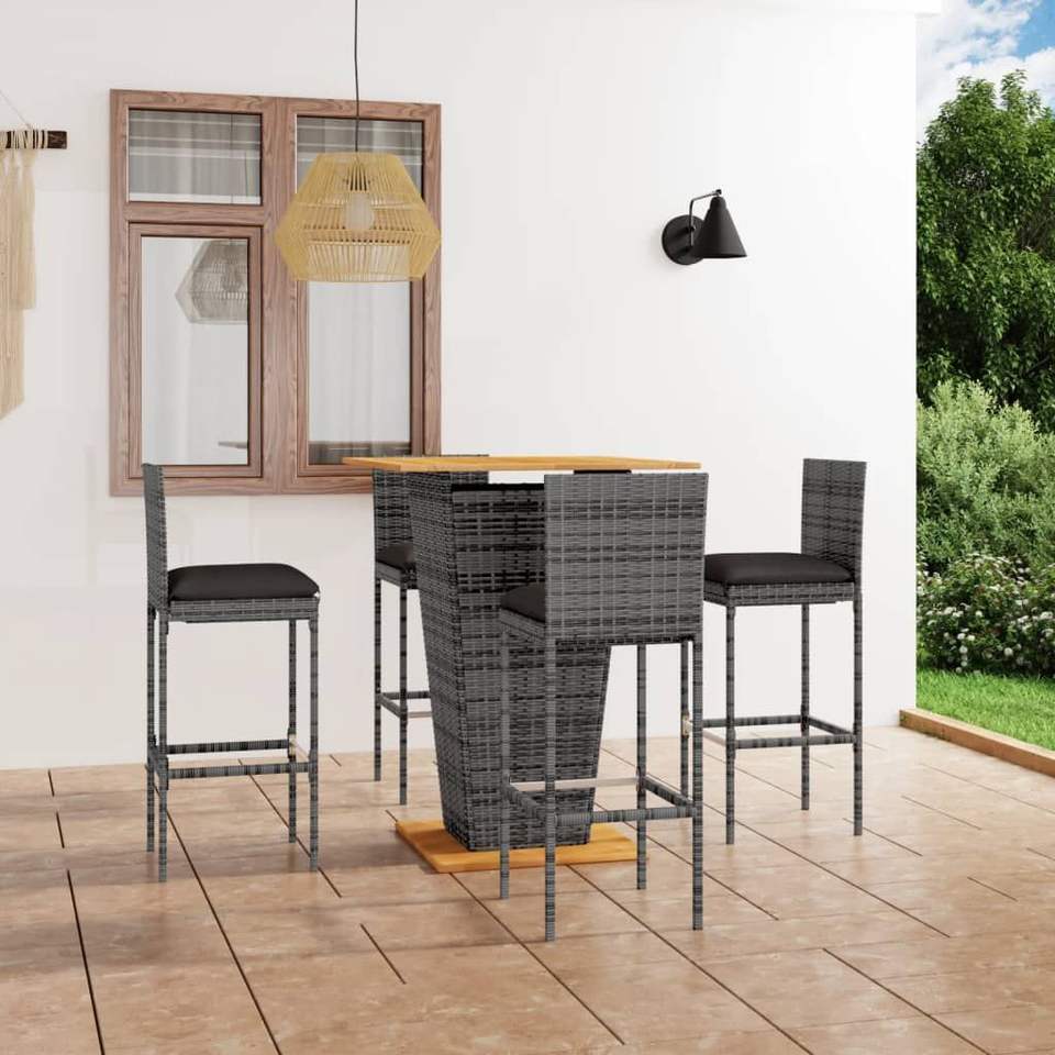 Ensemble de bar de jardin en polyrotin gris, résistant et de taille moyenne, collection de mobilier de jardin durable