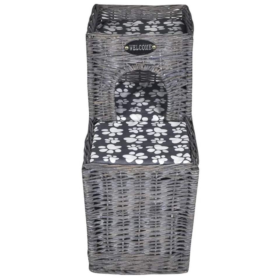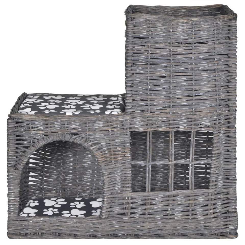Arbre à chat moyen gris en osier et polyester, mobilier pour animaux de compagnie, style moderne pour intérieur