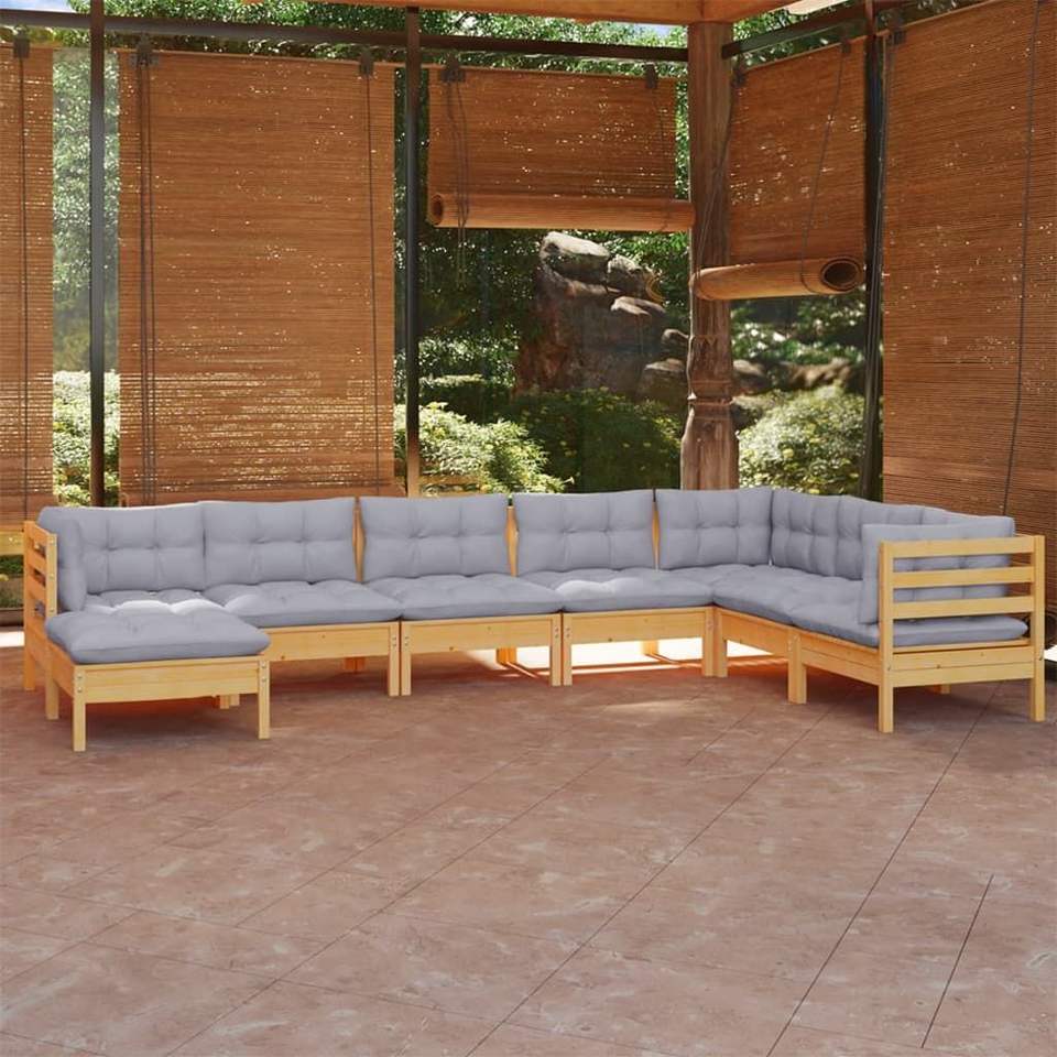 Ensemble de salon de jardin modulaire moyen en pin massif gris
