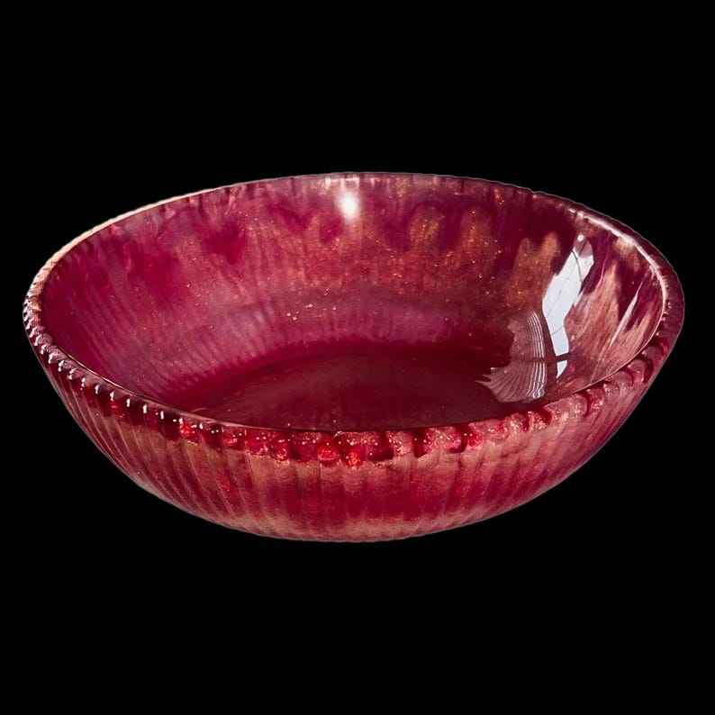 Bol décoratif artisanal en résine époxy rouge moyen, design géode