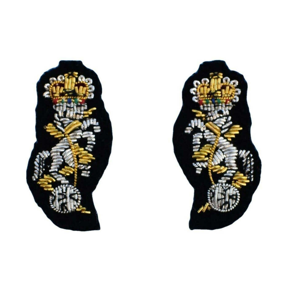 Insigne de Lord Lt Gorgets confortable, en fil de bullion, avec broderie de feuilles de chêne argentées moyennes et bouton uni