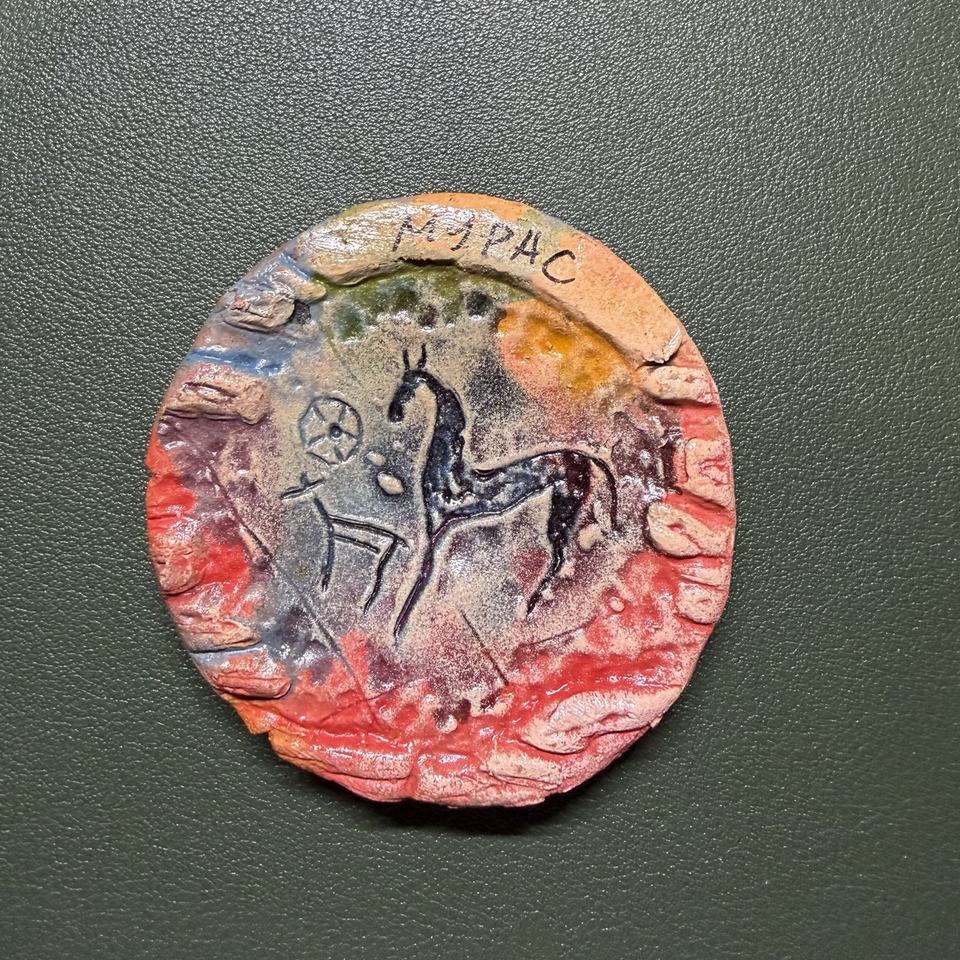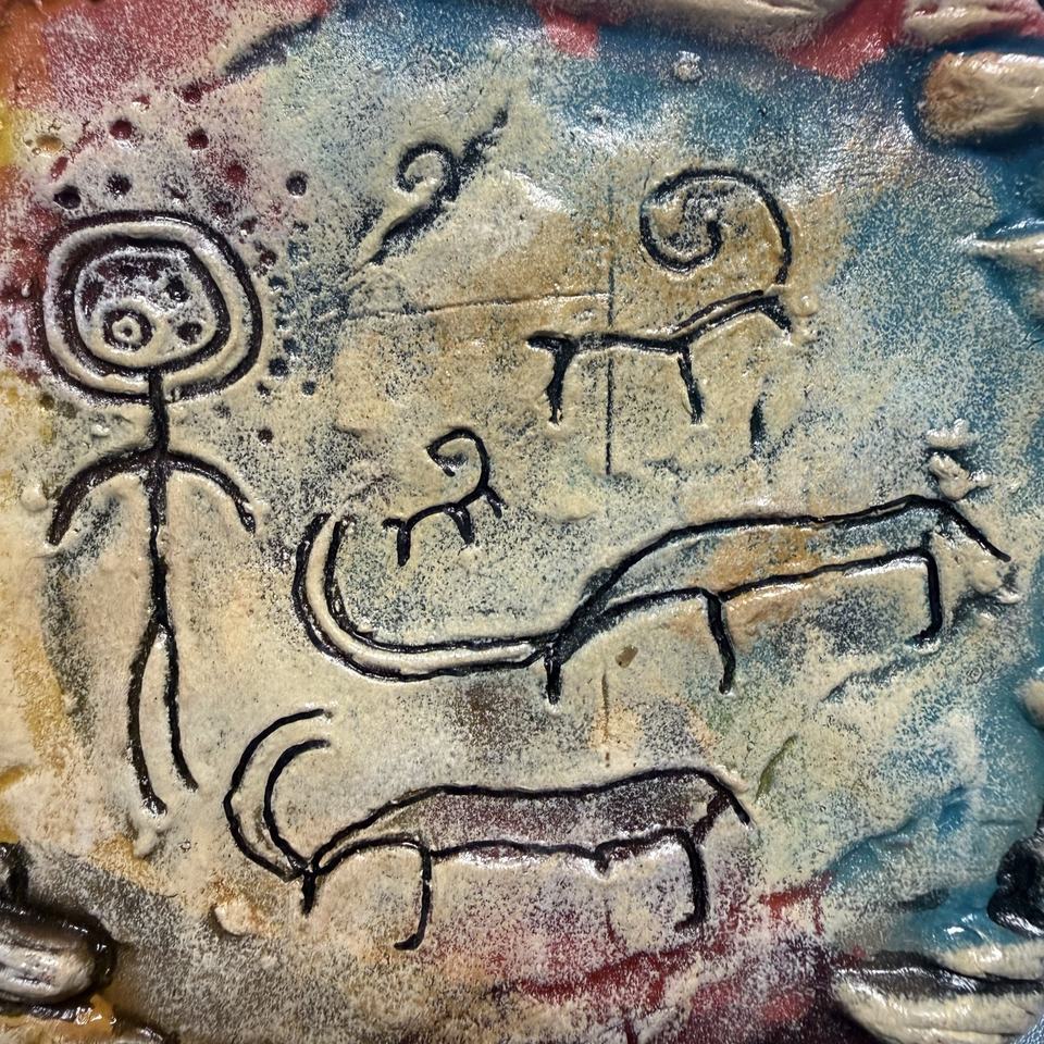 Figurine en argile artisanale de taille moyenne et ensemble d'aimants de réfrigérateur à motifs de pétroglyphes anciens - Décoration pour Navigateur du Désert, Guérison Mystique et Manifestation