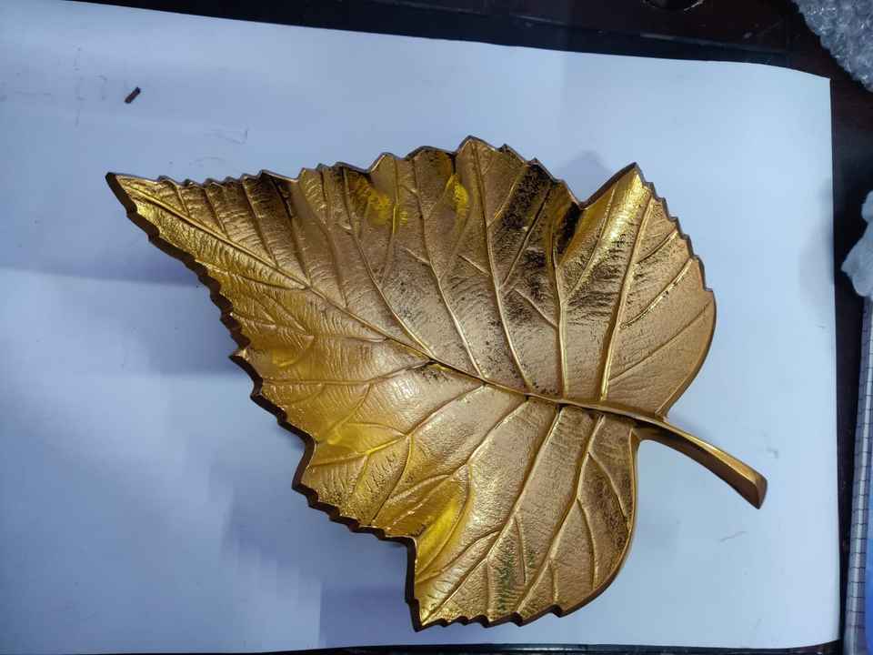 Plateau de service en métal en forme de feuille de taille moyenne évider la conception ovale écologique pour la maison et l'hôtel quantité minimale de commande 50pcs