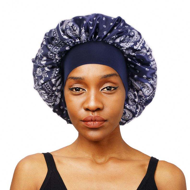 Bonnet de beauté féminin à large bande en satin à motif paisley de taille moyenne pour la vie quotidienne Couverture de cheveux longs