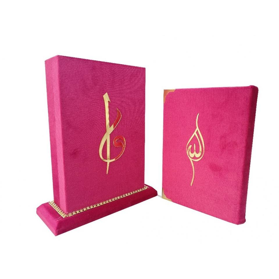 Coran de taille moyenne dans une boîte en velours scellée 292 rose - CORAN dans une BOÎTE EN VELOURS SCELLÉE