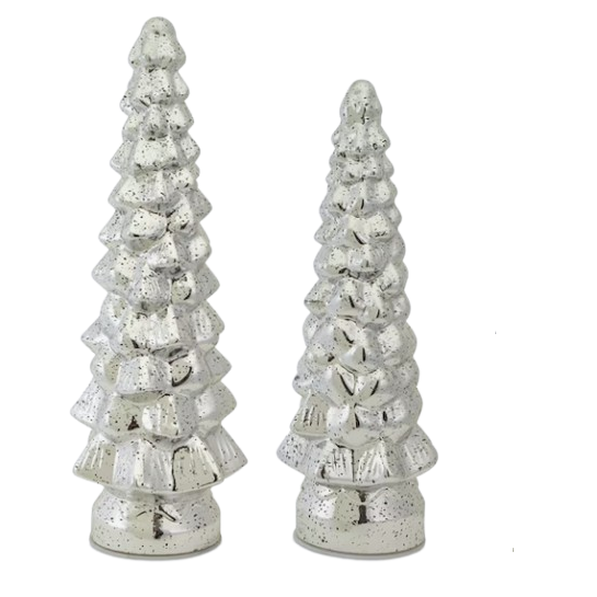 Ensemble de deux arbres de Noël en fer de taille moyenne, finition argentée, décoration de la maison, espace de vie festif, métal moderne, artisanat durable, décoration