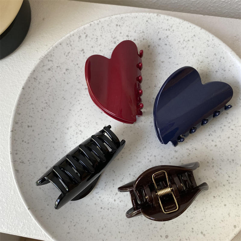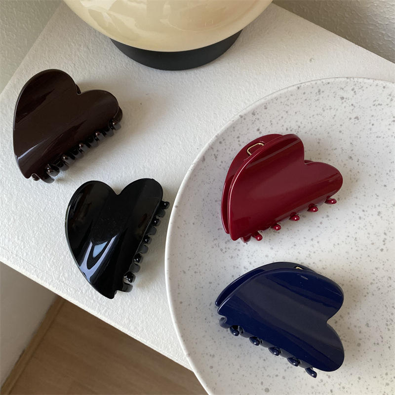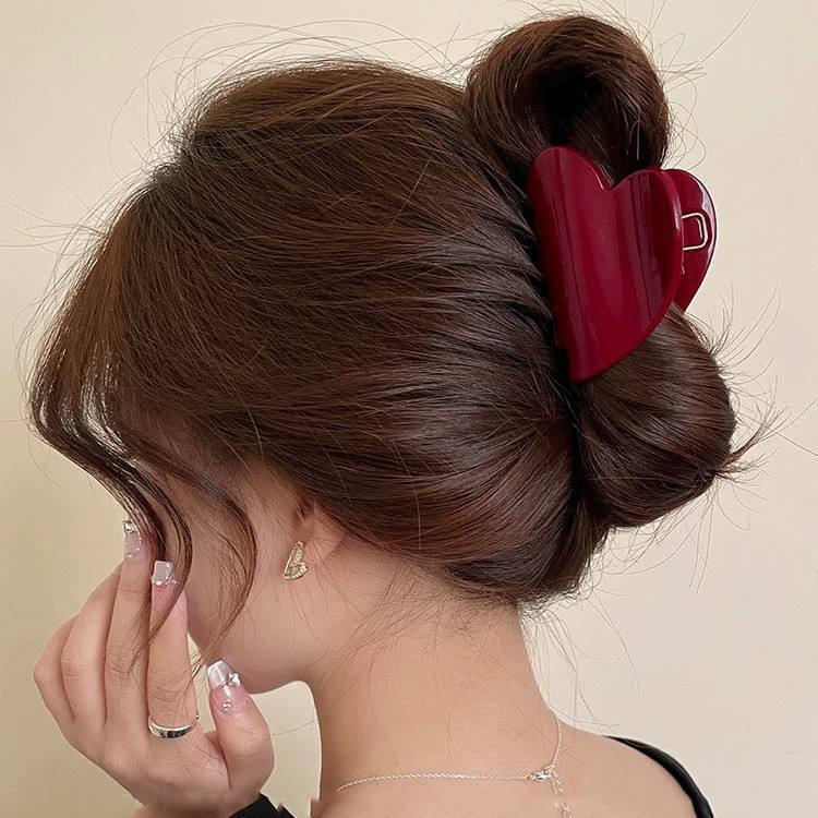Pinces à cheveux moyennes unisexes tendance en PC imprimé cœur rouge 7cm – Nouveau design, accessoires capillaires élégants et adorables