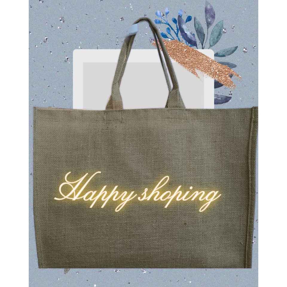 Medium-Sized Durable Burlap Tote Bag 'Happy Shopping' Eco-Friendly Fabric Screen Printing Logo Letter Advertising Daily Gifts