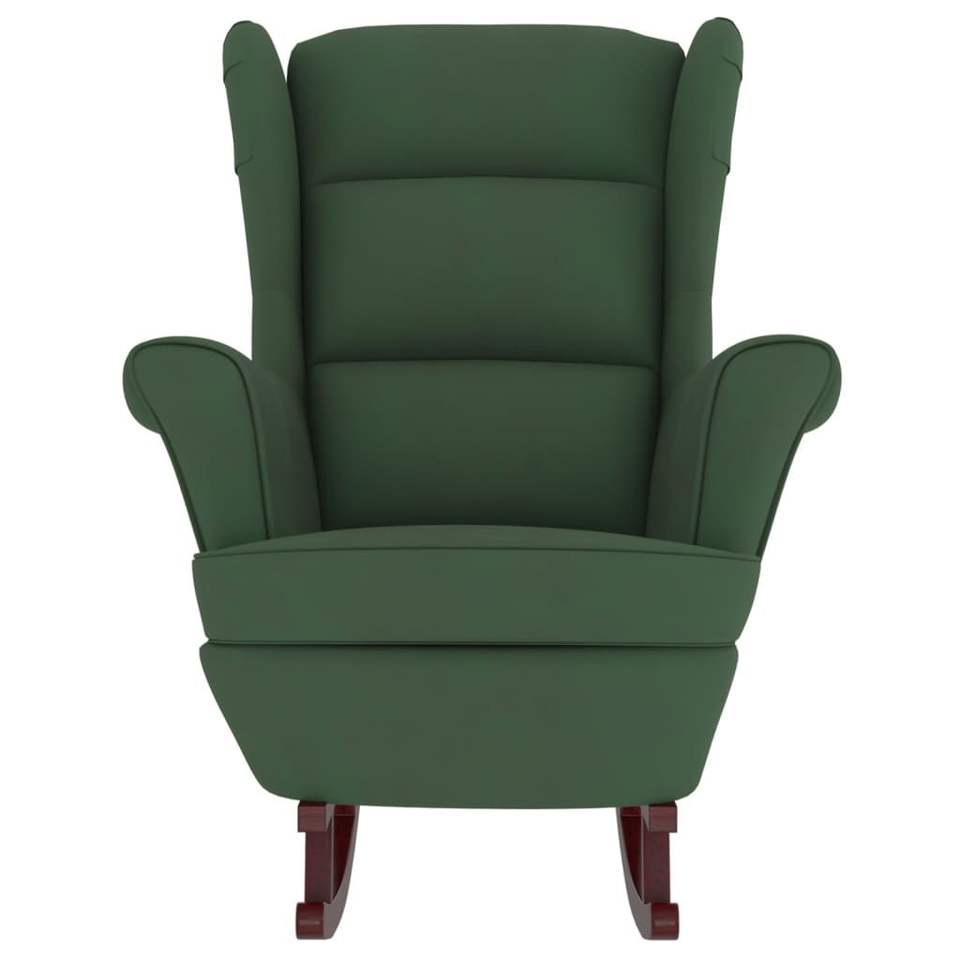 Fauteuil à bascule en bois de caoutchouc massif de taille moyenne avec revêtement en velours vert foncé pour salon