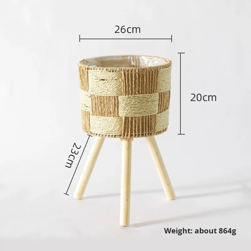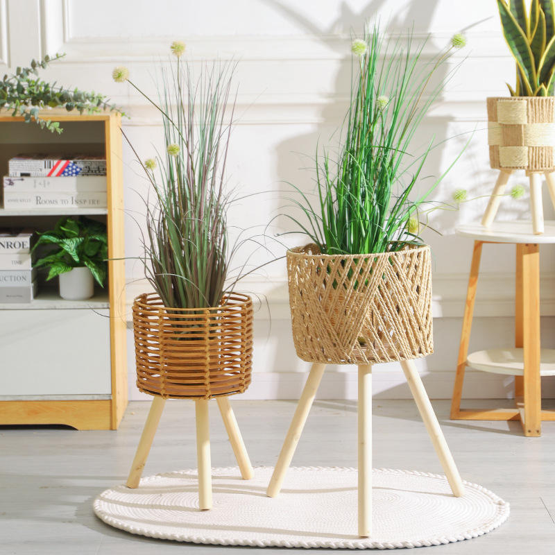 Support à fleurs moyen en bois massif en rotin radis vert support de rangement tissé en bambou balcon salon canapé combinaison Pot de fleur