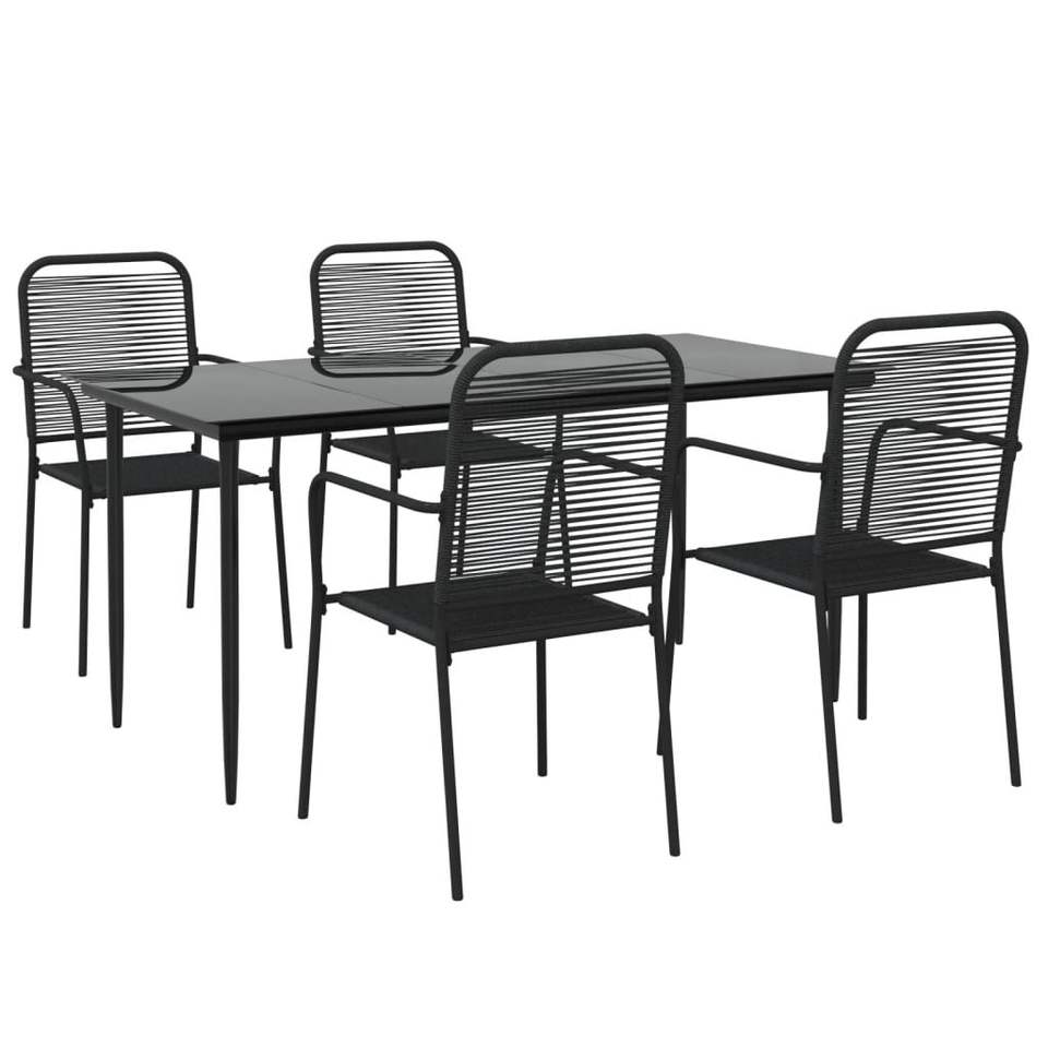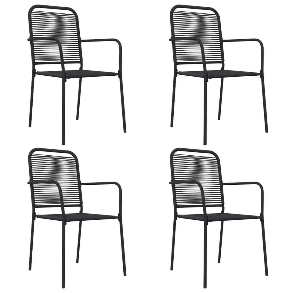 Ensemble de salle à manger de jardin en corde de coton noir avec structure métallique, empilable, 4 places, mobilier d'extérieur au design contemporain
