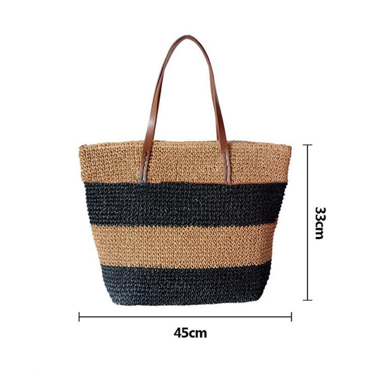Sac à main tricoté en paille moyenne avec poignée Design rayé-Sac à provisions en gros du Vietnam