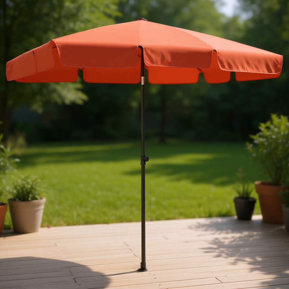 Parasol de terrasse en polyester terracotta 2,5 m, inclinable, ouverture manuelle, protection solaire extérieure, design contemporain