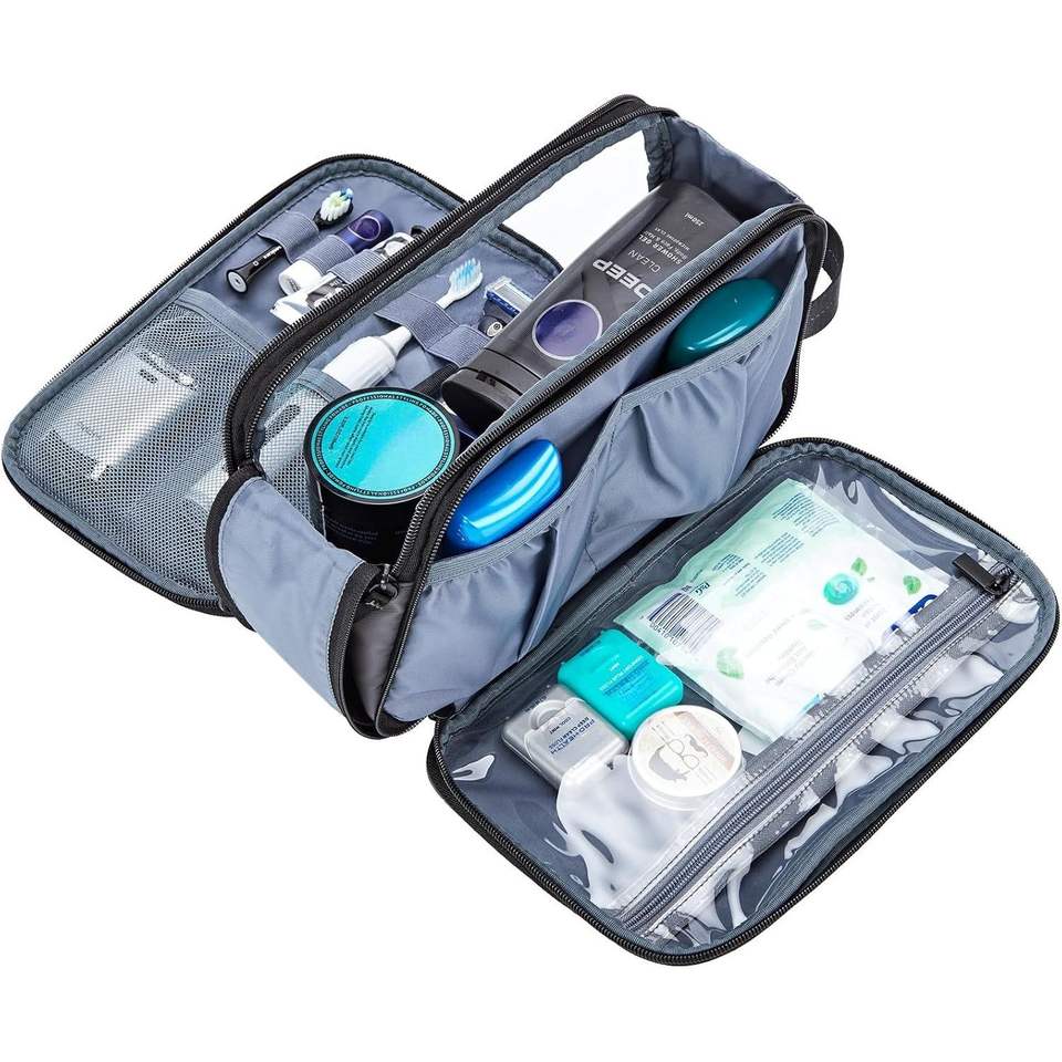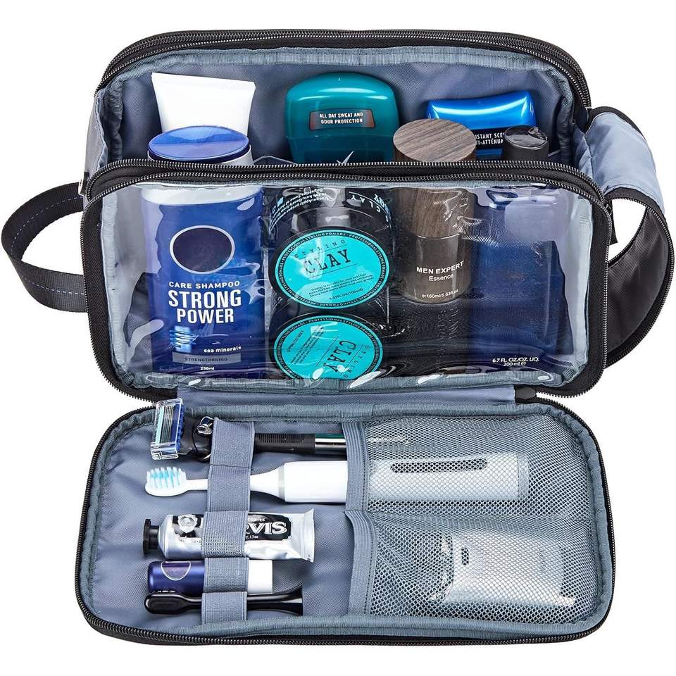 Trousse de Toilette de Voyage Polyvalente à Double Face Entièrement Ouverte, Résistante à l'Eau, pour l'Hygiène Masculine