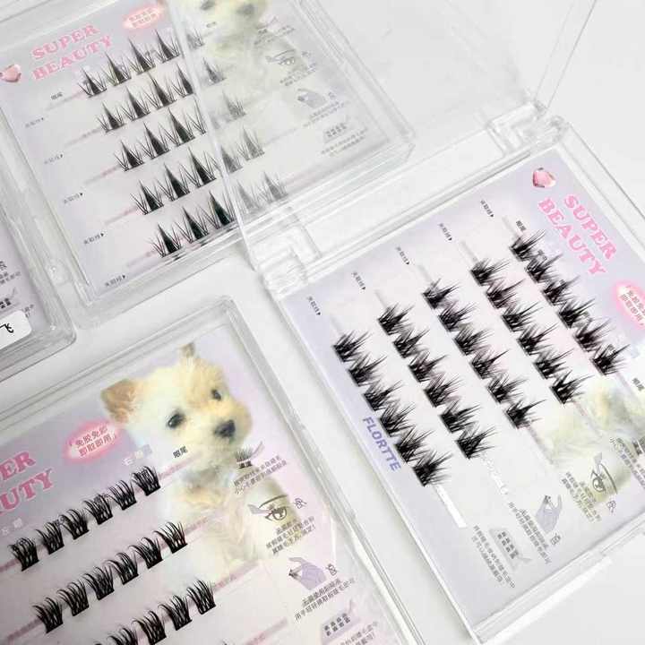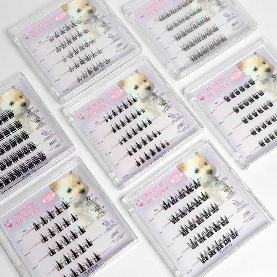 Meecil Top Vente Extensions de cils en ruban de cheveux synthétiques faits à la main DIY pour kit de cils en grappes 5 rangées