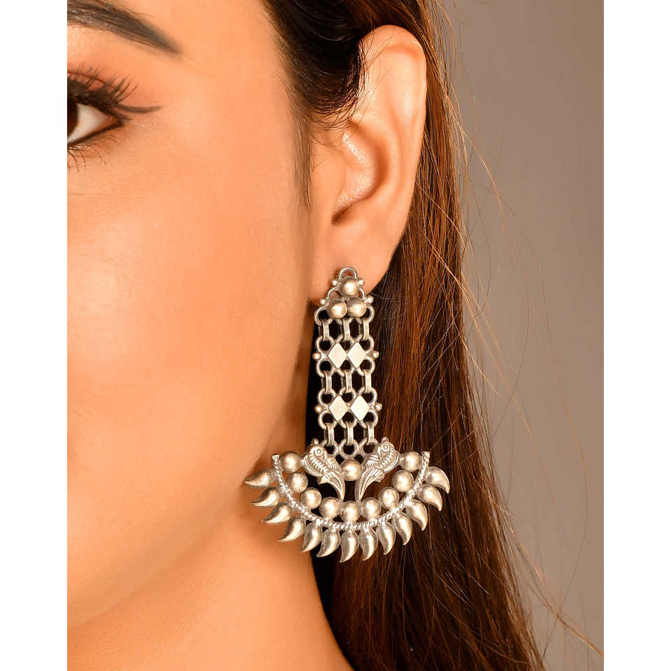 Boucles d'oreilles fines et tendance en argent Meera Jaipur Ryna pour mariage et fiançailles
