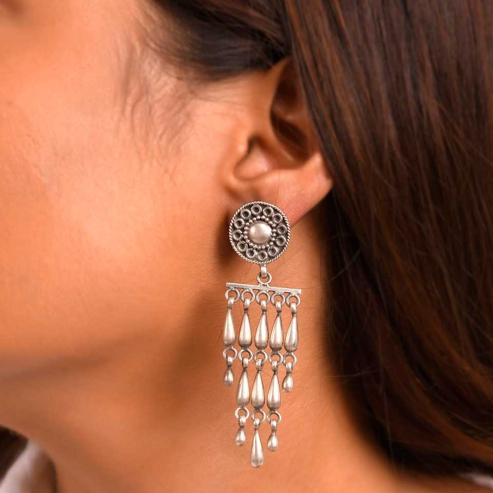 Boucles d'oreilles pendantes en argent pur tribal Meera Jaipur, accessoires de mode