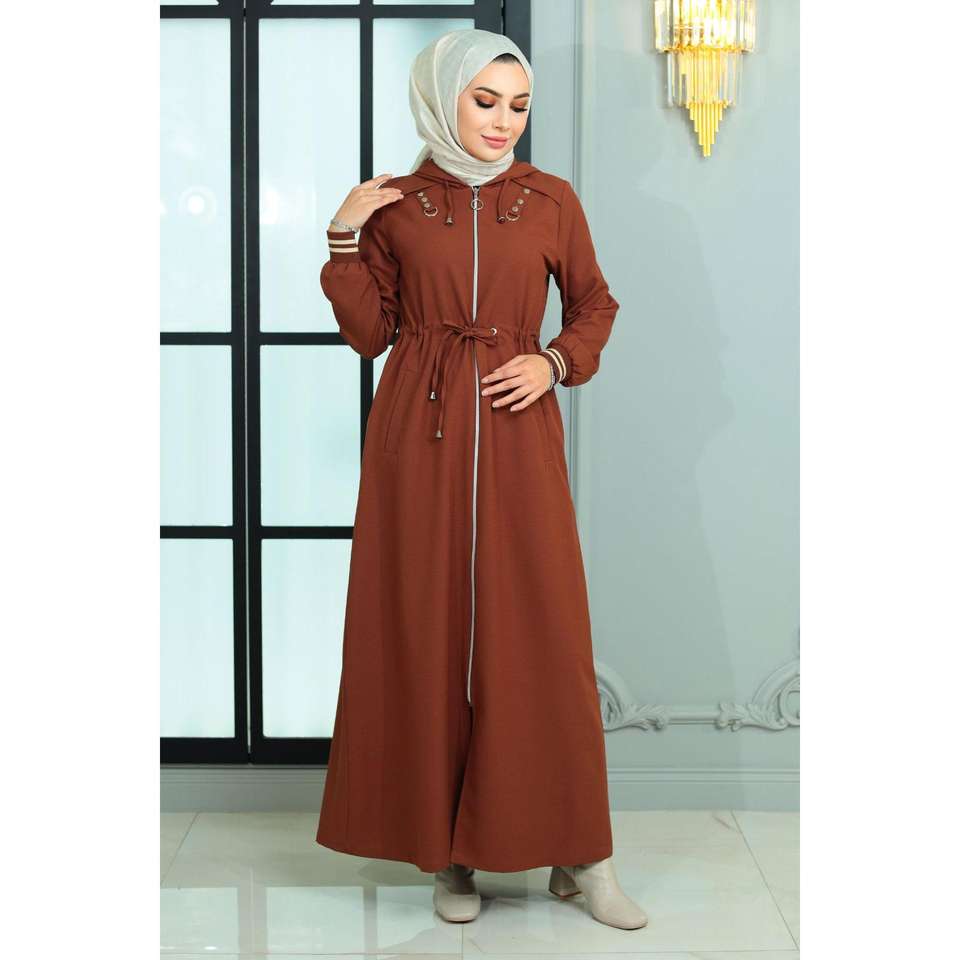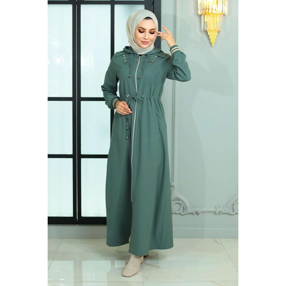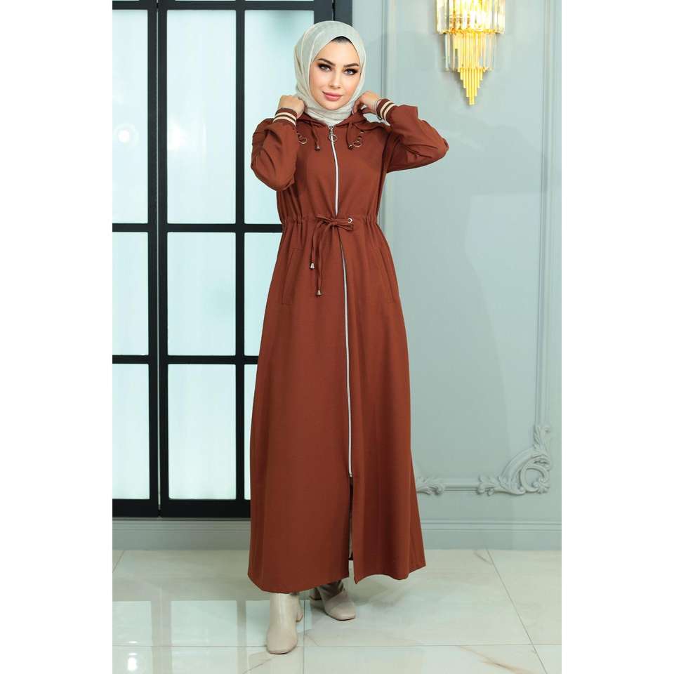 Manteau Abaya Trench-coat Modeste Quotidien à Lacets et Fermeture Éclair, Taille Élastique, Modèle Mega Merchant 18974