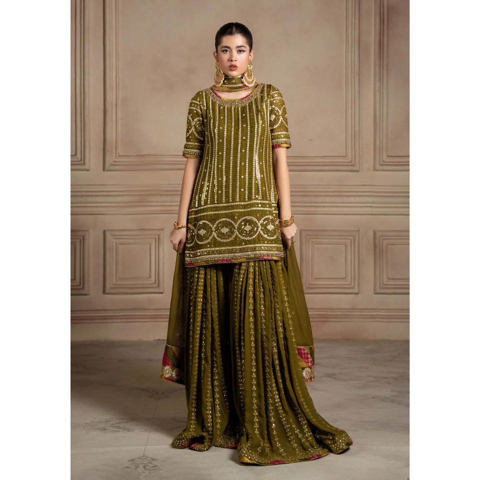 Collection Mehndi Garara en Chiffon 3 pièces non cousues / cousues