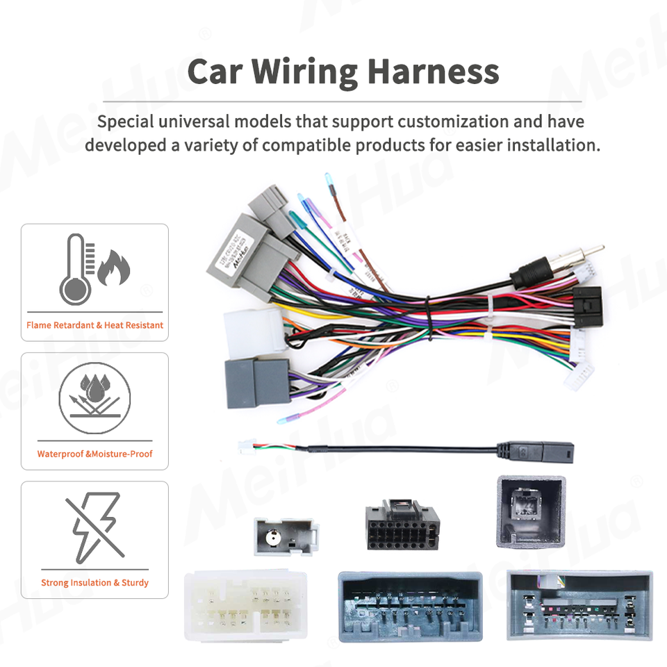 Câble de faisceau de câblage pour autoradio Meihua pour Toyota/Honda/Hyundai/VW CRV/Civic/Accord, adaptateur de câble avec Canbus