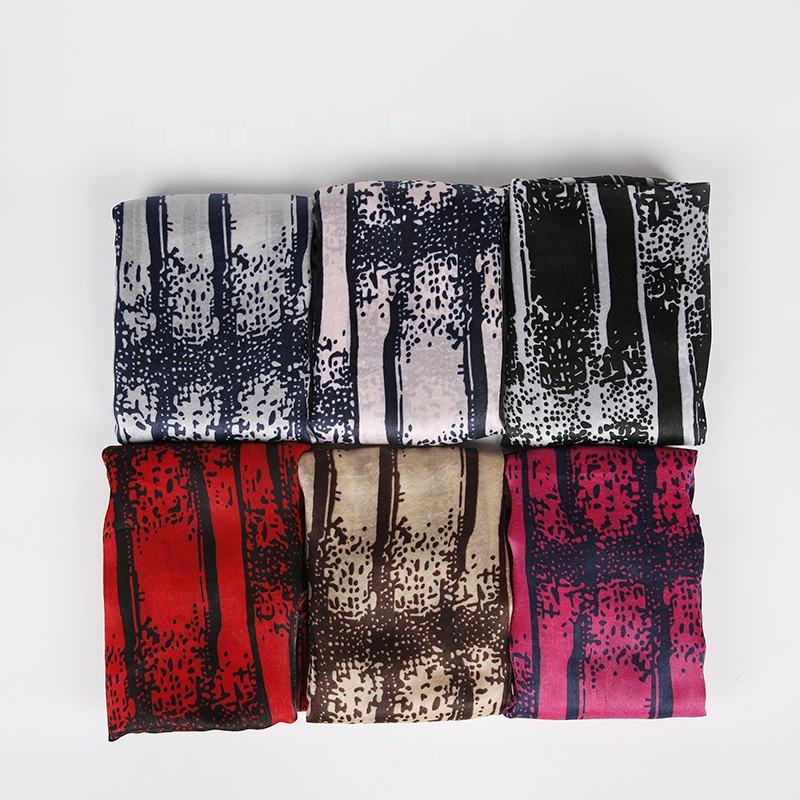 Meilleur Prix Femmes Musulmanes Quotidien Porter Rayure Impression Soie Hijab Écharpe En Satin De Soie Foulard