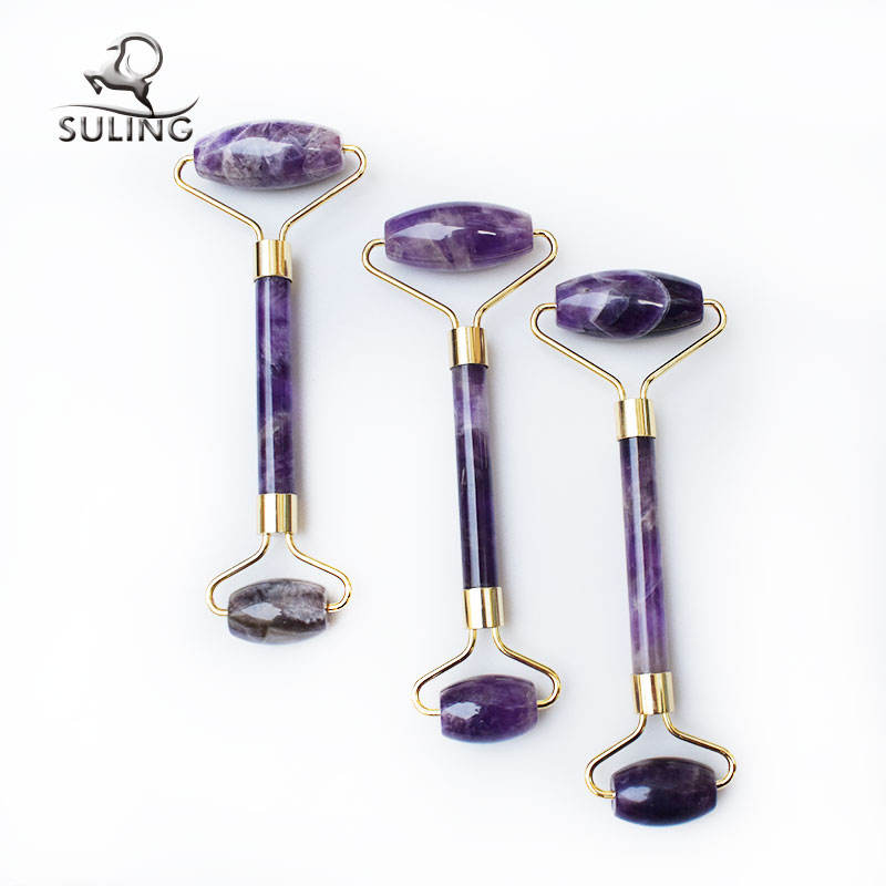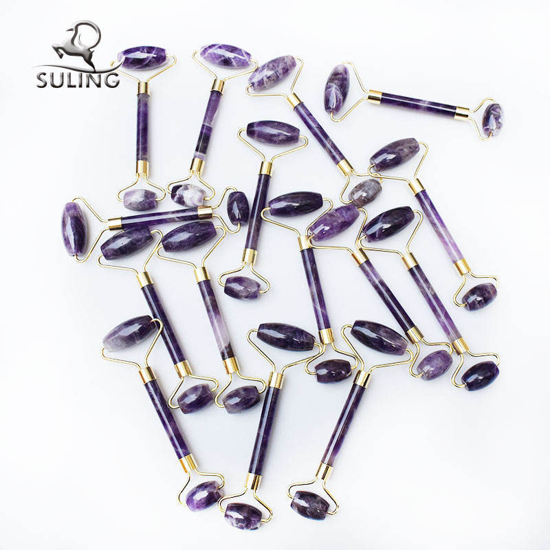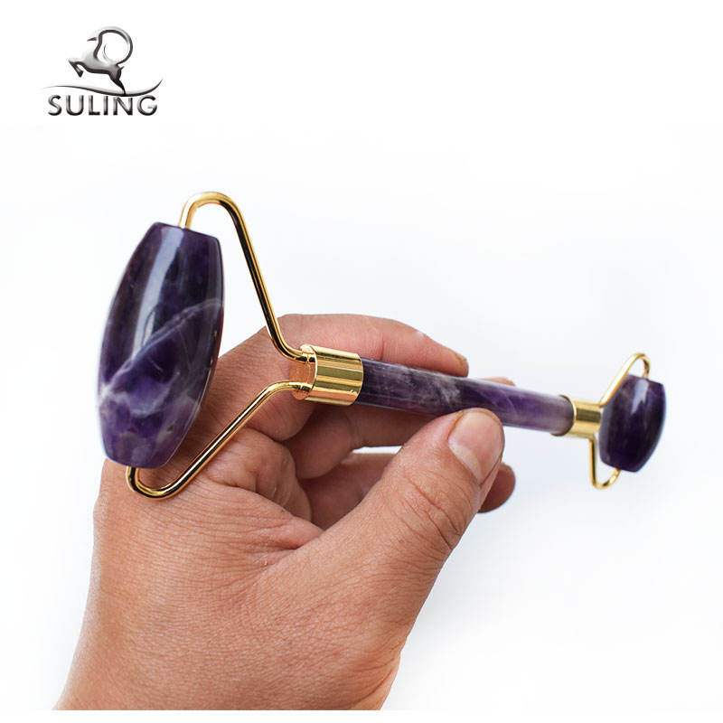 Meilleur Prix Portable Améthyste Rouleau de Jade Gua Sha Beauté Massage Du Visage Violet Cristal Jade Rouleau Pour Le Visage