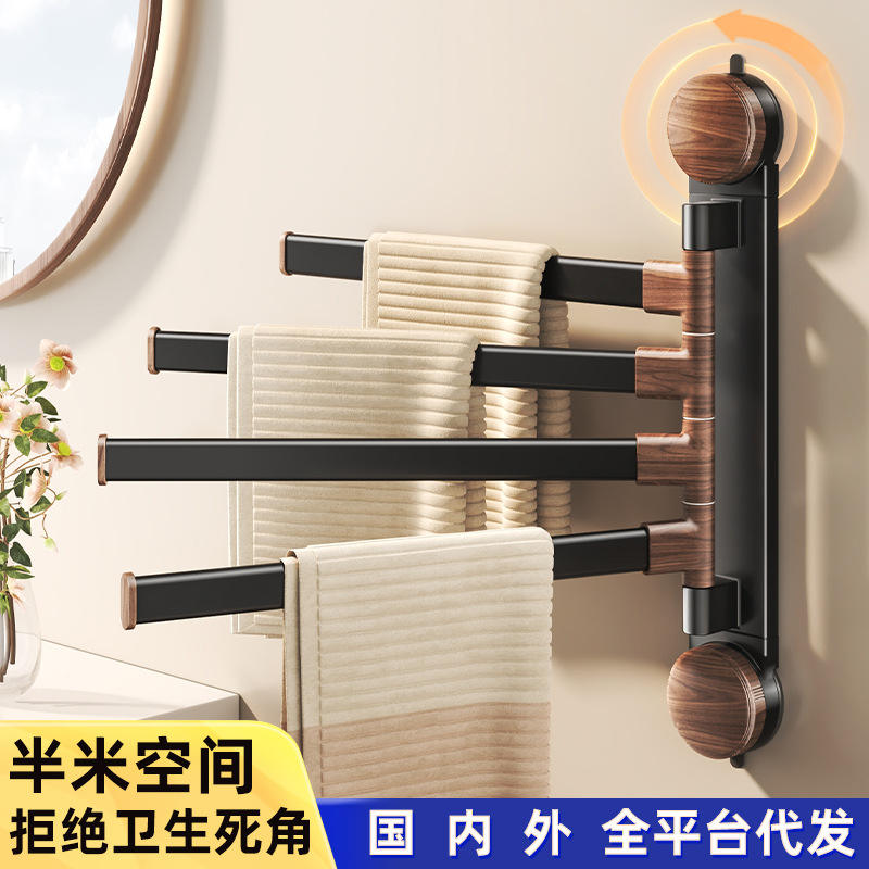 Porte-serviettes de salle de bain Meiruide à 4 barres, à ventouse, rotatif, mural, pliable, multi-niveaux, avec barre de rangement