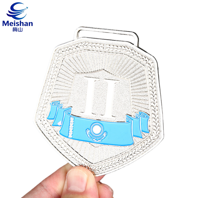 Badge de collection Meishan en alliage métallique poli, forme croissant irrégulière, motif ciel nocturne étoilé argenté