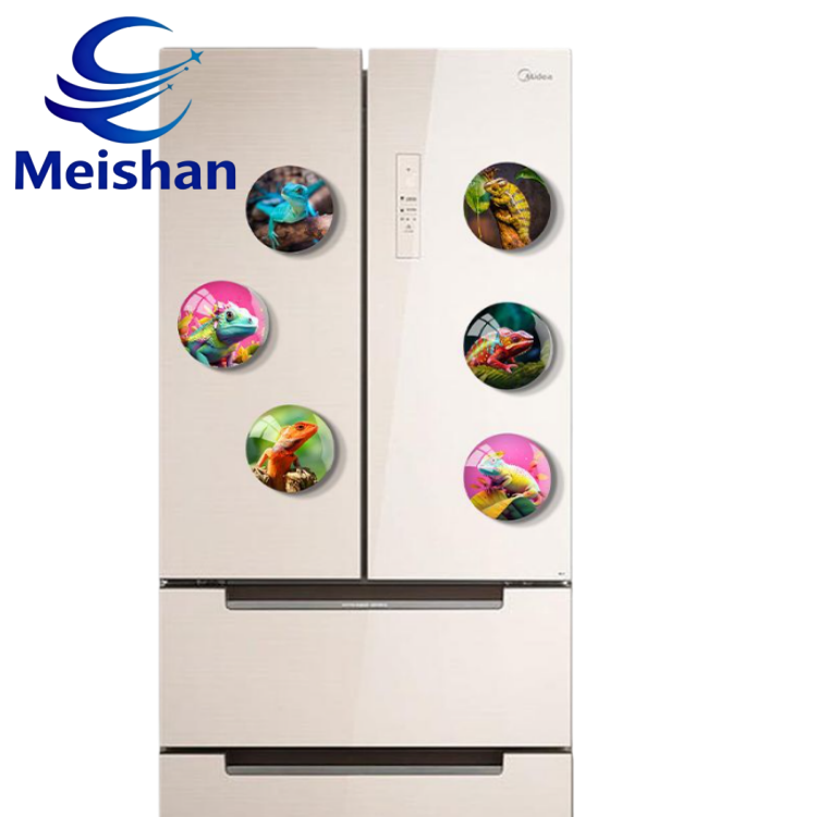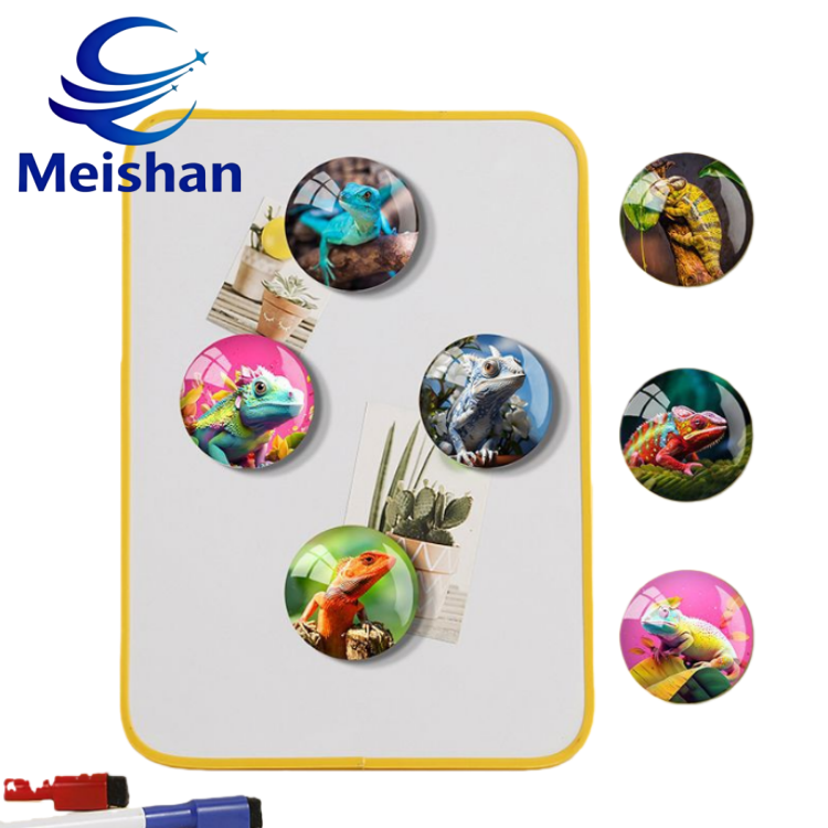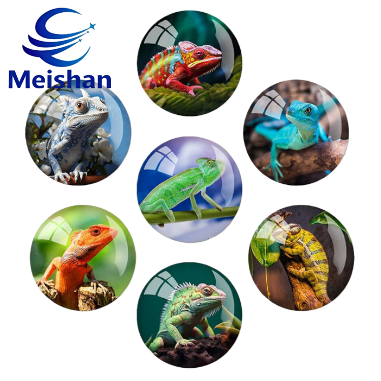 Aimants de réfrigérateur en verre personnalisés en gros Meishan : Aimants de réfrigérateur ronds de dessin animé d'animaux européens et américains, caméléon