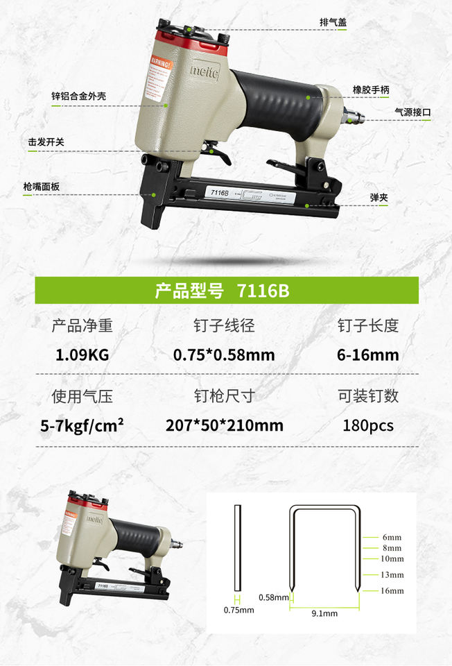 Agrafeuse pneumatique Meite 7116B 22GA 3/8 pouces pour tapisserie, meubles, fabricant de meubles