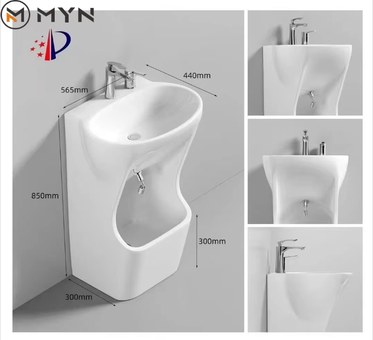 Meiyani Lavabo carré en céramique à finition brillante moderne, lavabo Wudu antidérapant à large ouverture, lavabo musulman or argent