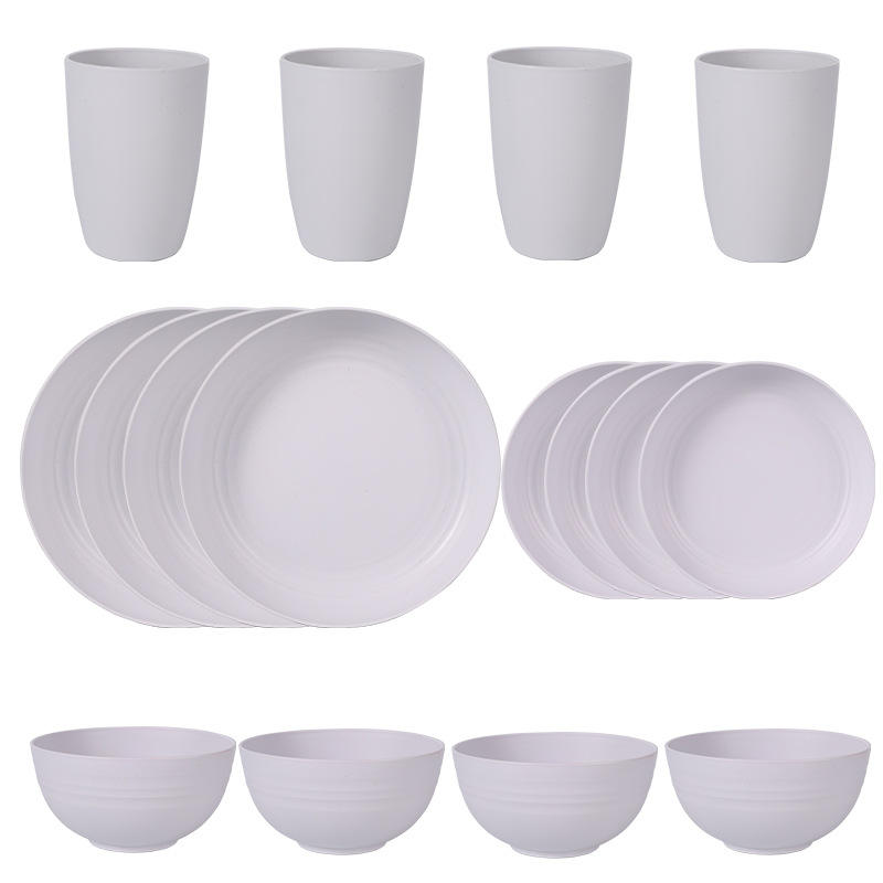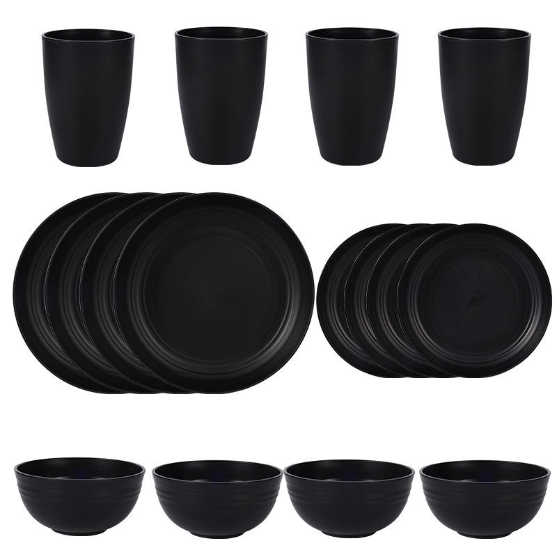 Ensembles de vaisselle de fête en mélamine de style américain allant au micro-ondes, incassable, léger, ensemble d'assiettes et de bols de 16 pièces