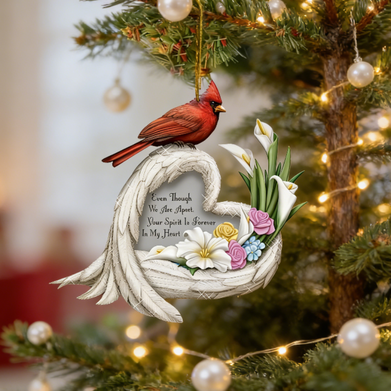 Ornement de Noël en résine en forme de cœur avec ailes d'ange et cardinal, décoration suspendue de sympathie « Malgré notre séparation »