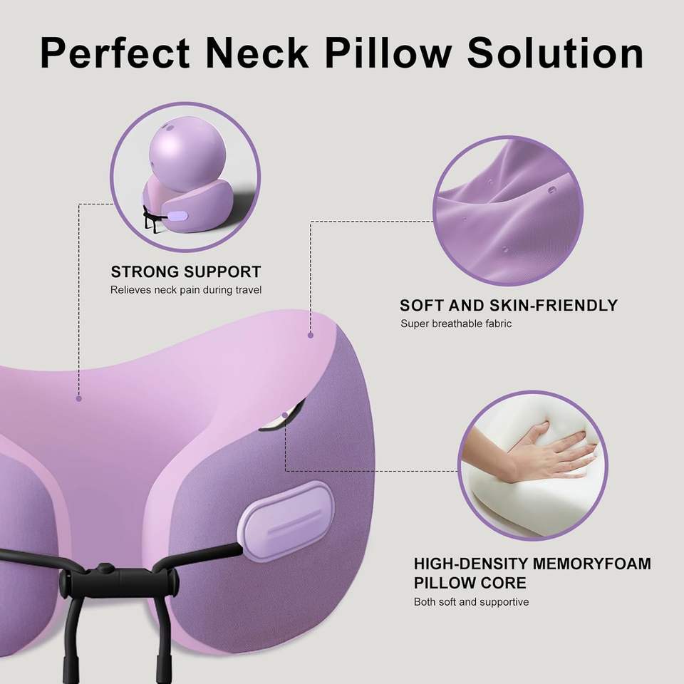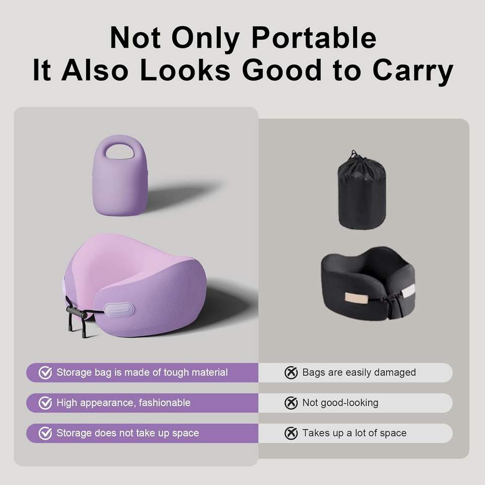 Oreiller cervical en mousse à mémoire de forme, oreiller cervical de voyage pour avions/voiture/maison/bureau, housse lavable, sac de rangement portable sans latex