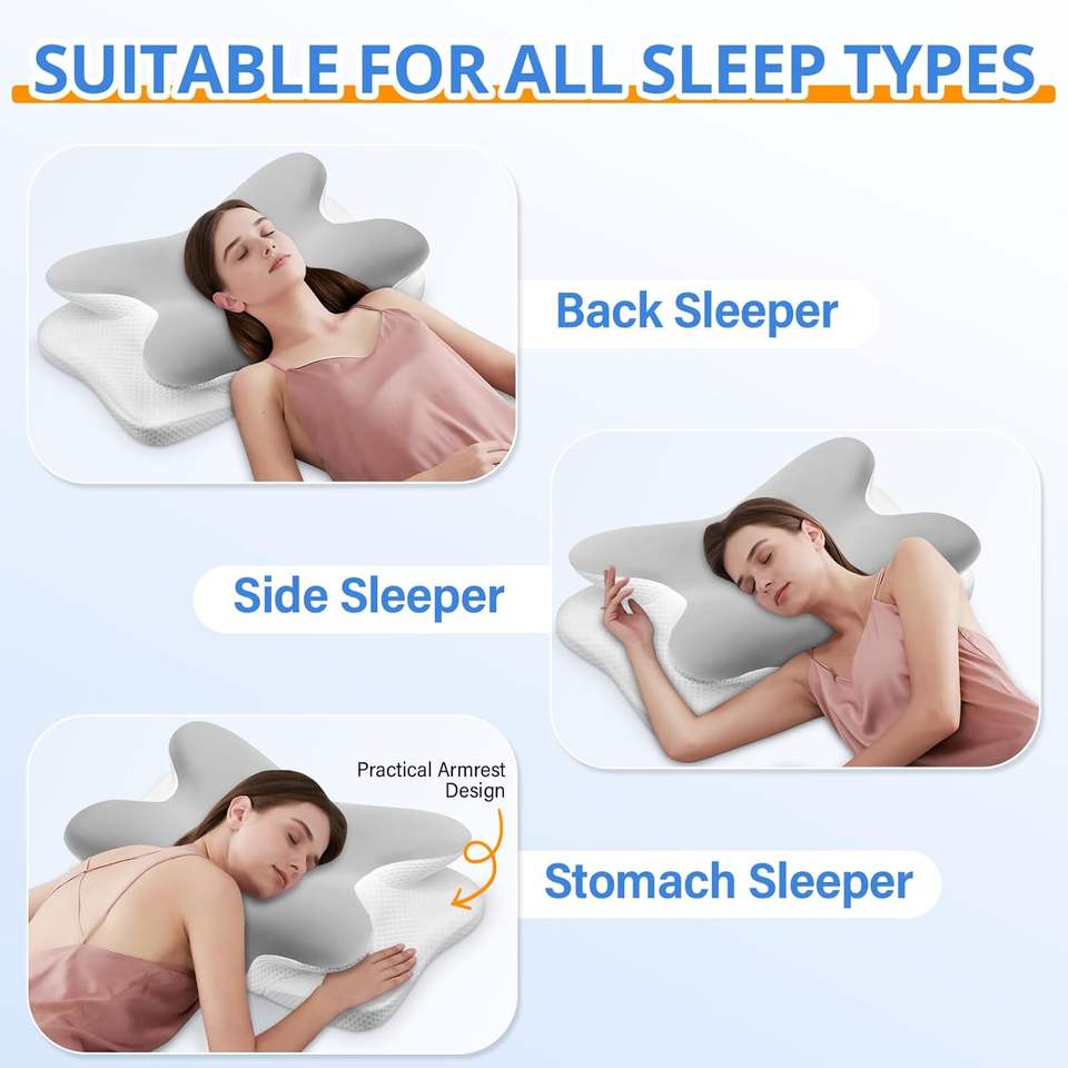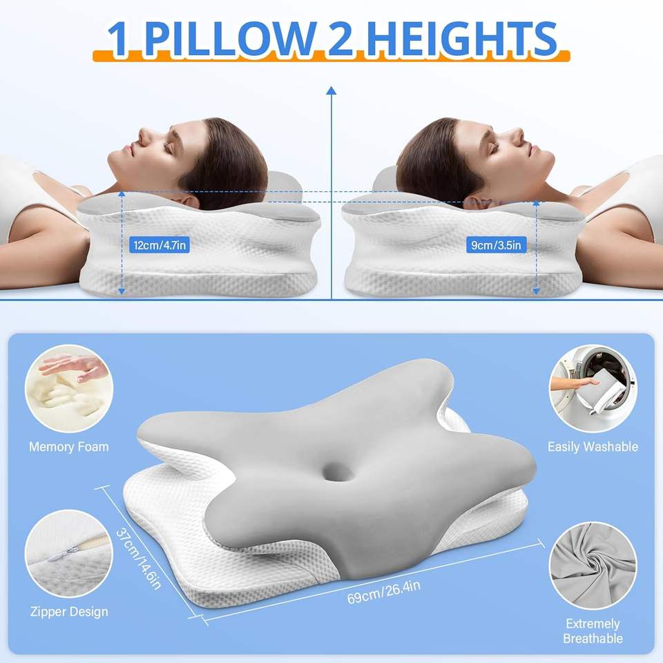 Oreillers en mousse à mémoire de forme pour soulager les douleurs au cou avec taie d'oreiller respirante, oreiller de soutien du cou pour les dormeurs sur le côté, le dos et le ventre