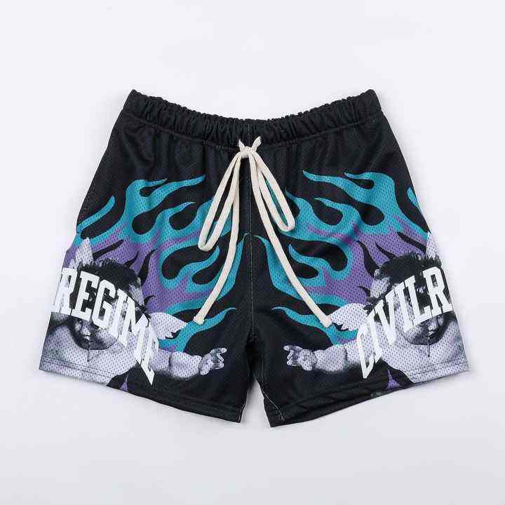 Short de gymnastique en maille double couche en polyester et coton pour homme, short respirant à fermeture à cordon de serrage style vintage avec sublimation graphique personnalisée
