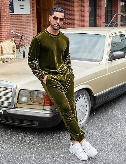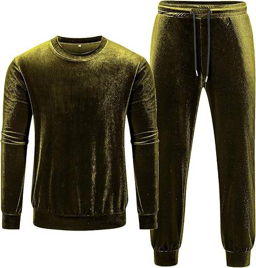 Ensemble décontracté 2 pièces pour homme en velours, pull à manches longues et col rond, pantalon de survêtement en velours à taille élastique