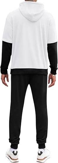 Ensemble de survêtement 2 pièces streetwear pour homme, épais, avec sweat à capuche et pantalon de jogging décontracté, patchwork de couleurs contrastées