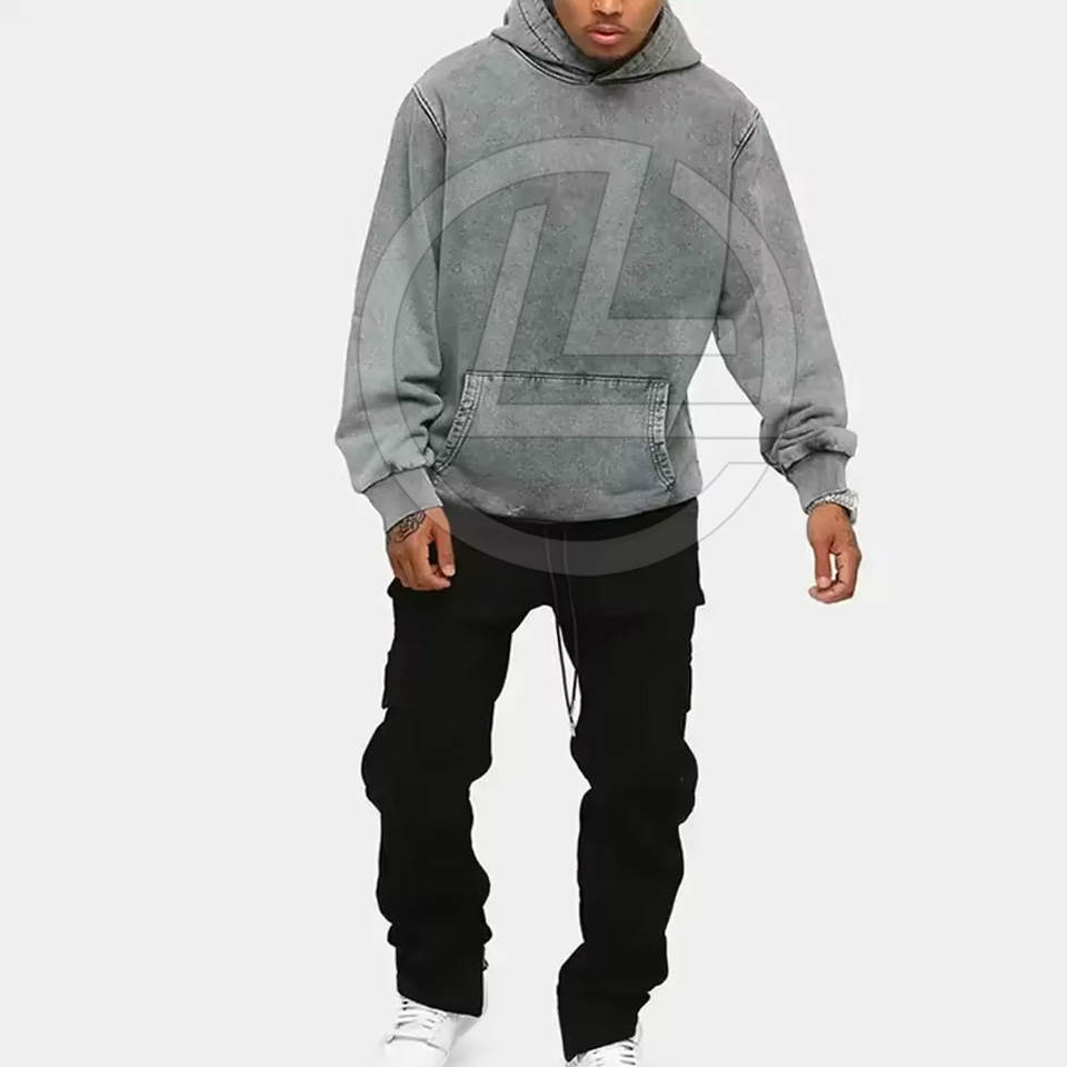 Sweat à capuche délavé à l'acide pour hommes avec poignets côtelés et doublure en polaire douce Sweat à capuche délavé à l'acide pour hommes