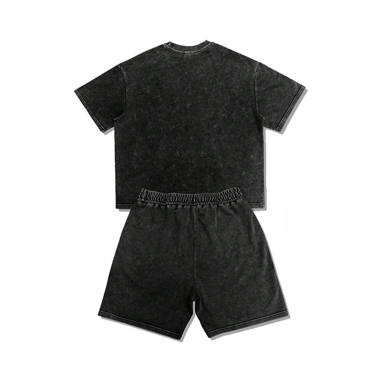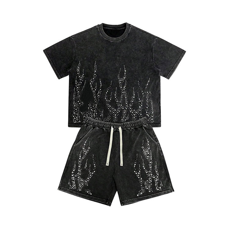 Ensemble court homme délavé à l'acide avec strass, t-shirt oversize et short, tenue 2 pièces streetwear vintage