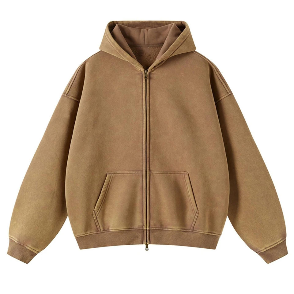 Sweat-shirts à capuche zippés délavés à l'acide pour hommes